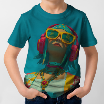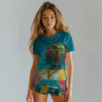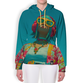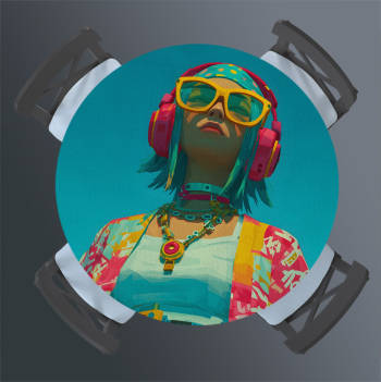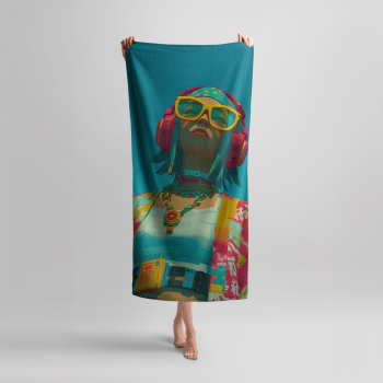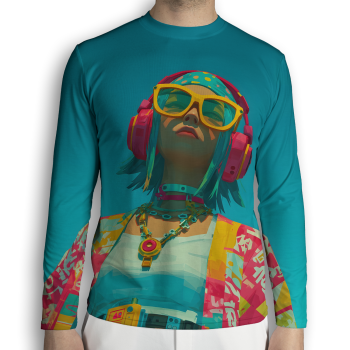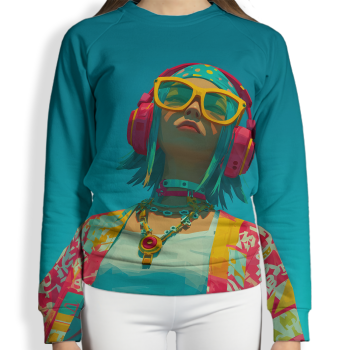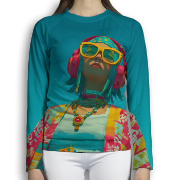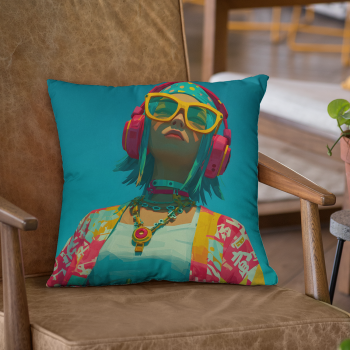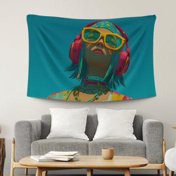 További termékek a "Fejhallgatós lány élénk színmezőben" mintával