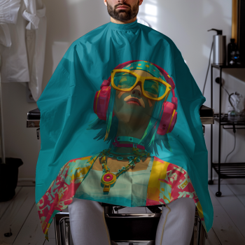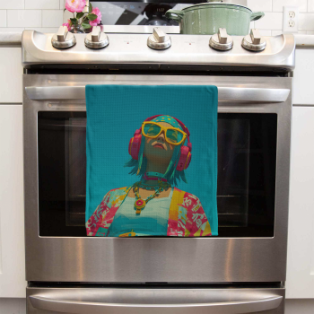 Fejhallgatós lány élénk színmezőben Kötény